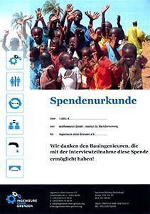 Dank Ihrer Mitarbeit können wir nun nicht nur unser Angebotsportfolio zielgerecht erweitern, sondern dürfen auch 1.020 Euro an „Ingenieure ohne Grenzen“ spenden.